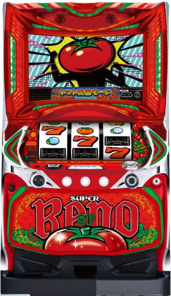 | スペック | ノーマルAタイプ(1種2種混合タイプ/リノ仕様)6.1号機 ベース:約38G(設定①) コイン単価:約3.8円(設定①) 天井:1831G+α→ボーナス当選まで中段トマト高確率状態に移行) 最大MY:約3,014枚 M◆:約3,355枚 BB獲得枚数:平均123枚 RB獲得枚数:平均62枚 BR比率=2:1 |