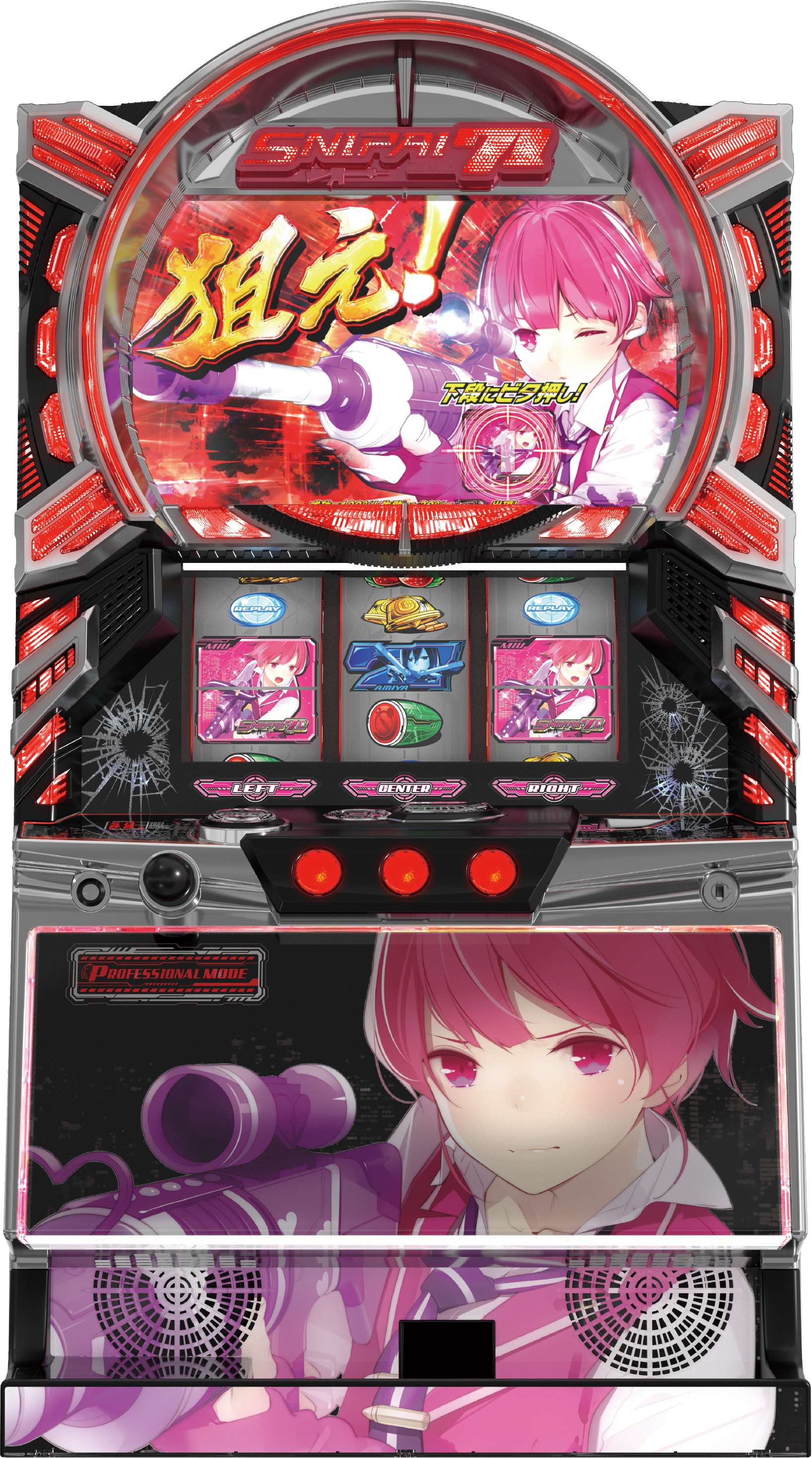 | スペック | 擬似ボーナス搭載の差枚数上乗せ+技術介入特化型AT機 AT純増枚数:2.8枚 ベース:43.2G(全設定共通) コイン単価:3.0円(設定①) 天井:710G→おしりペンペンタイム TY:470(設定①) MY 市場想定:2264(設定①) フル攻略時:2744(設定①) 減少区間なし |