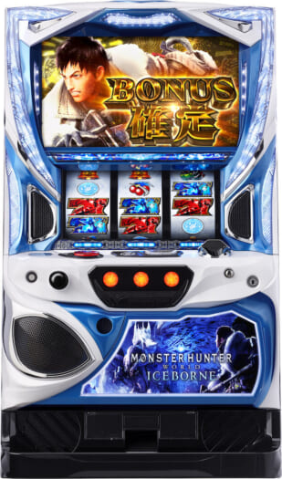| スペック | 擬似ボーナス搭載のバトル継続&セットストック特化型AT機(6.5号機) AT純増枚数:約2.8枚 ベース:約39G コイン単価:約2.8円(設定①) 天井:最大999G+α MY:約2,500枚 TY:約450枚 【狩猟ボーナス】 青7揃い 勝率:約65% 保証G数:60Gor70Gor100G 獲得枚数:約180枚~約300枚 赤7揃い 勝率:約50% 保証G数:40Gor50G 獲得枚数:約120枚~約150枚 黒バー揃い 勝率:約50% 保証G数:20G 獲得枚数:約80枚 |